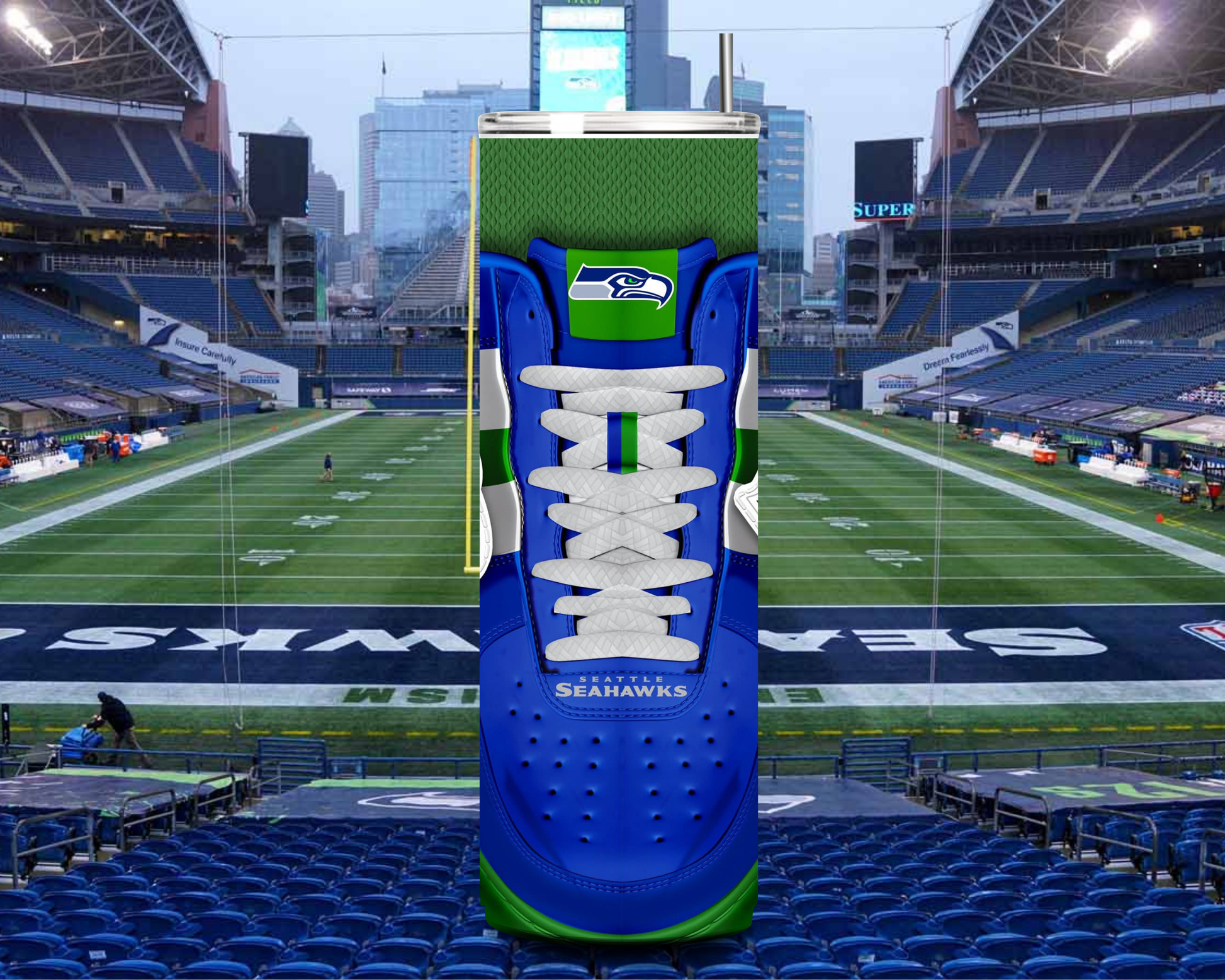 Show your Seahawks pride with our 20oz sneaker tumbler. Made with durable stainless steel, this tumbler keeps your favorite hot or cold beverage at the perfect temperature. Sip in style representing your favorite team on the go with an unique and functional tumbler. Definitely one of a kind. Get yours TODAY!!!